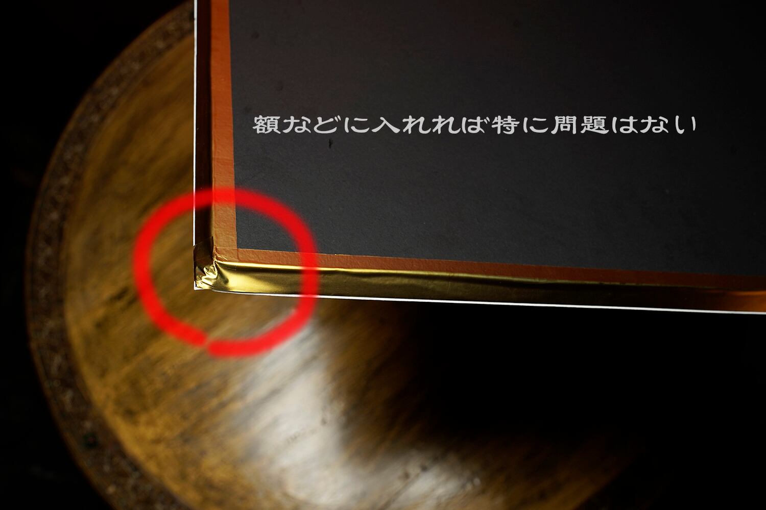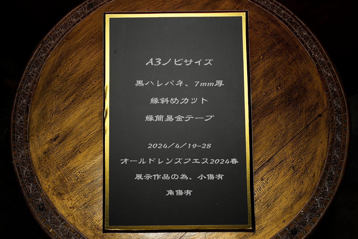 黒ハレパネ7mm厚に貼付け済(斜めカット、カット面は金テープ保護)