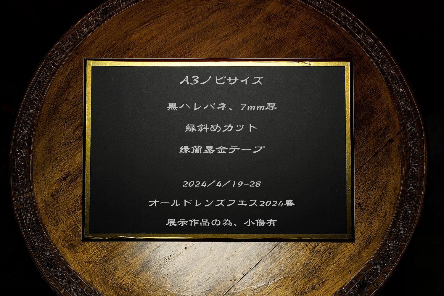 黒ハレパネ7mm厚に貼付け済(斜めカット、カット面は金テープ保護)